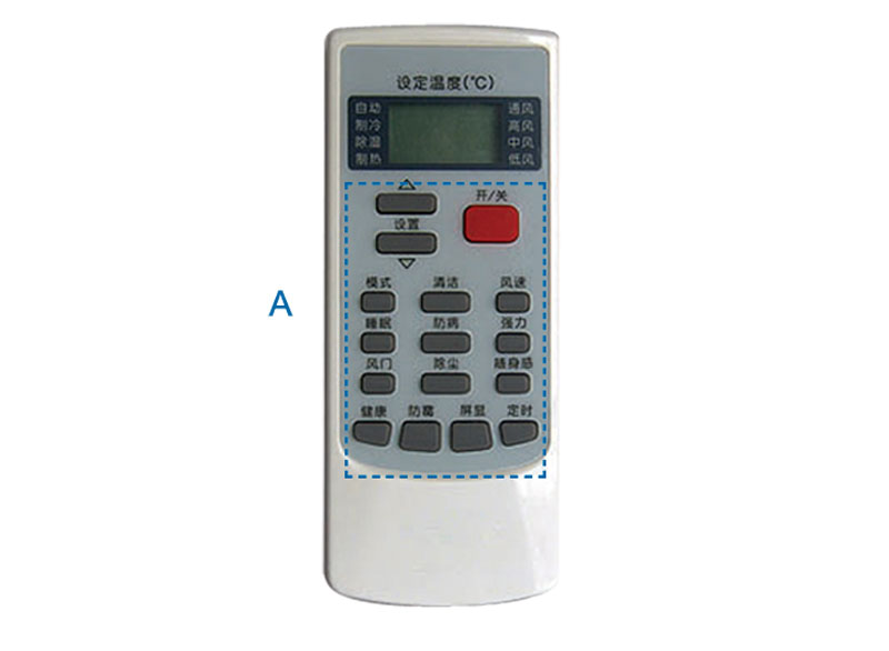 A區(qū)內(nèi)按鍵的數(shù)量可以根據(jù)需要適當增減